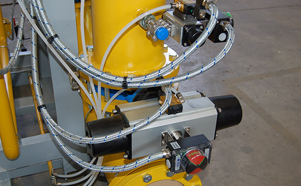 空分設備是煤化工行業(yè)、石化行業(yè)在生產制造過程中使用的重要儀器設備,其運作機械原理是實現對空氣的降溫冷卻,同時以增壓方式讓空氣的體積變小、轉化為液態(tài),根據空氣中各組成氣體之間的沸點差異,讓液化物與氣體充分接觸并發(fā)生反應,在熱質交換原理的作用下,實現高純度氣體的分離。得銳自動化公司閥門在空分設備上的應用主要分為兩大塊,大型空分設備上采用OMAL歐瑪爾的高頻、快速特性的氣動執(zhí)行器,在小型空分設備上使用的是OMAL歐瑪爾氣動梭閥和角座閥。